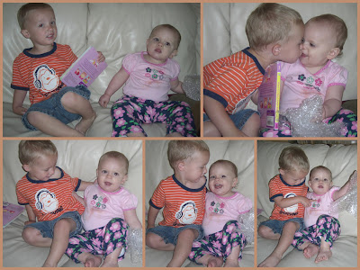 Holden and Natalie's relationship is blossoming now that they are both toddlers. It is so funny to watch them interact. Bridget and I are loving the fact that they are old enough to actually play together with minor supervision from the background...we actually get to have conversations again! :) And yes, that is my son kissing his "girlfriend" and touching her chest...in his defense he just really liked the flowers on her shirt. At least that's the excuse he went with!!