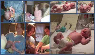 We were only there for 6 hours when Hunter made his arrival at 4:36 pm. He came out bright pink and showing us his healthy set of lungs! I feel so bad for them coming out of such a warm and cozy place into the cold and bright lights! We both agreed he looked so much like his big brother!