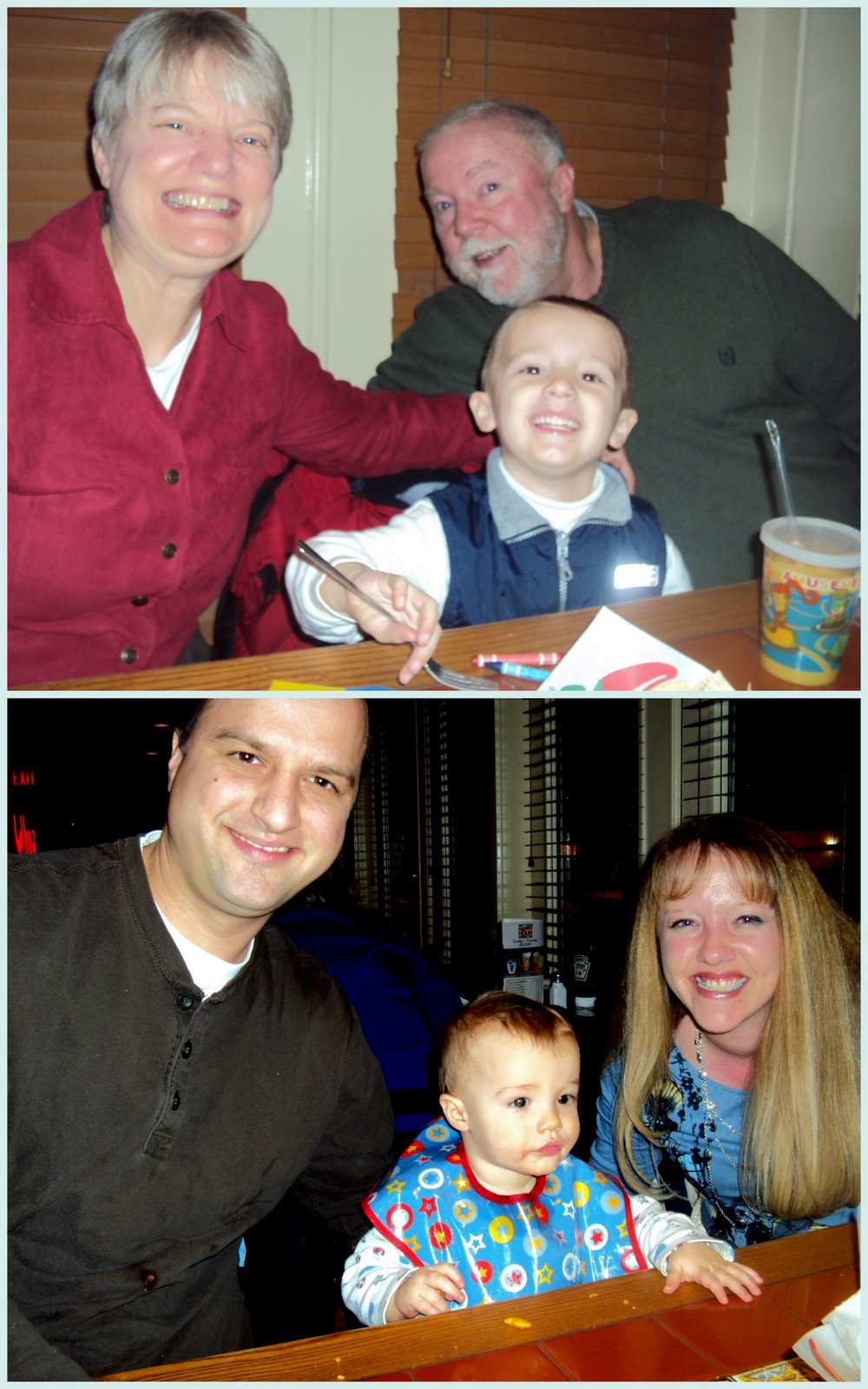 In the middle and bottom left pics of this collage you will see Hunter's newest expression. We call it his "wild animal" look. He scrunches his nose up and shows his two front teeth, which currently have a gap between them. I am hoping it will close down the road but he's still adorable regardless. Typically he makes this face when he his eye on the prize: something to BITE! That's right, my sweet little baby is a biter. He doesn't do it out of anger or to be mean, he has just figured out that chewing on things relieves his sore gums from teething....but he HASN'T figured out that should not include people!!! He will crawl up to me, grin, and lunge at my knee, shoulder, arm, etc. The other day he got Jay's big toe as he sat on he floor and left some big ol' dents! I tried to be sympathetic but I was laughing so hard it may not have come across as genuine. Poor Holden has been the brunt of much of the biting. He loves his baby brother and is pretty good natured about it; he has learned to run fast when he sees him coming after him! He usually act like it's a game and giggles as he yells, "Hunter's trying to get me!" It is hard for me to know how to teach a 9 month old this is not acceptable. I can't discipline him because he is too little to understand. I usually squeeze his cheeks together (gently) with my hand and say, "NO BITE!" in a loud, firm voice. And usually he gives me a big ol' grin. ;) I feel like we have puppy around or something. Gives a whole new meaning to the term, "ankle biter!"